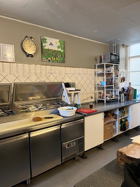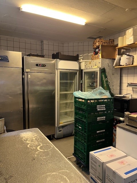 Bagtil findes gode personalefaciliteter, herunder toilet, kontor samt disponibelt rum til opbevaring. Derudover et rummeligt og funktionelt produktionskøkken med tilhørende køle- og frysefaciliteter samt udgang til gård.